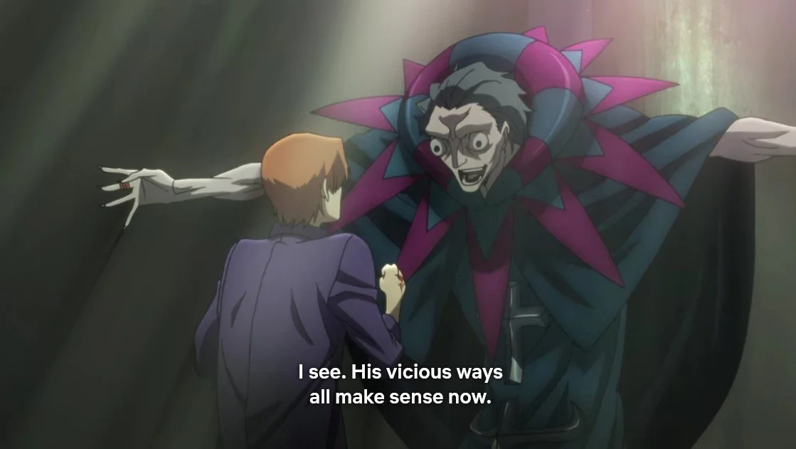 Okay, after the previous two episodes' seemingly serious failed attempts at philosophy, watching these two being ridiculously, cartoonishly, comically evil and insane is kind of a breath of fresh air.