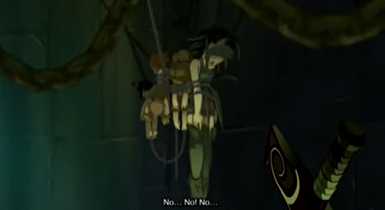 Finally, Goultard stands over Katar's broken, barely gasping body, and demands to know why he did this. Katar says, in a quiet, fearful whisper, that it's because "he feeds himself on anger."