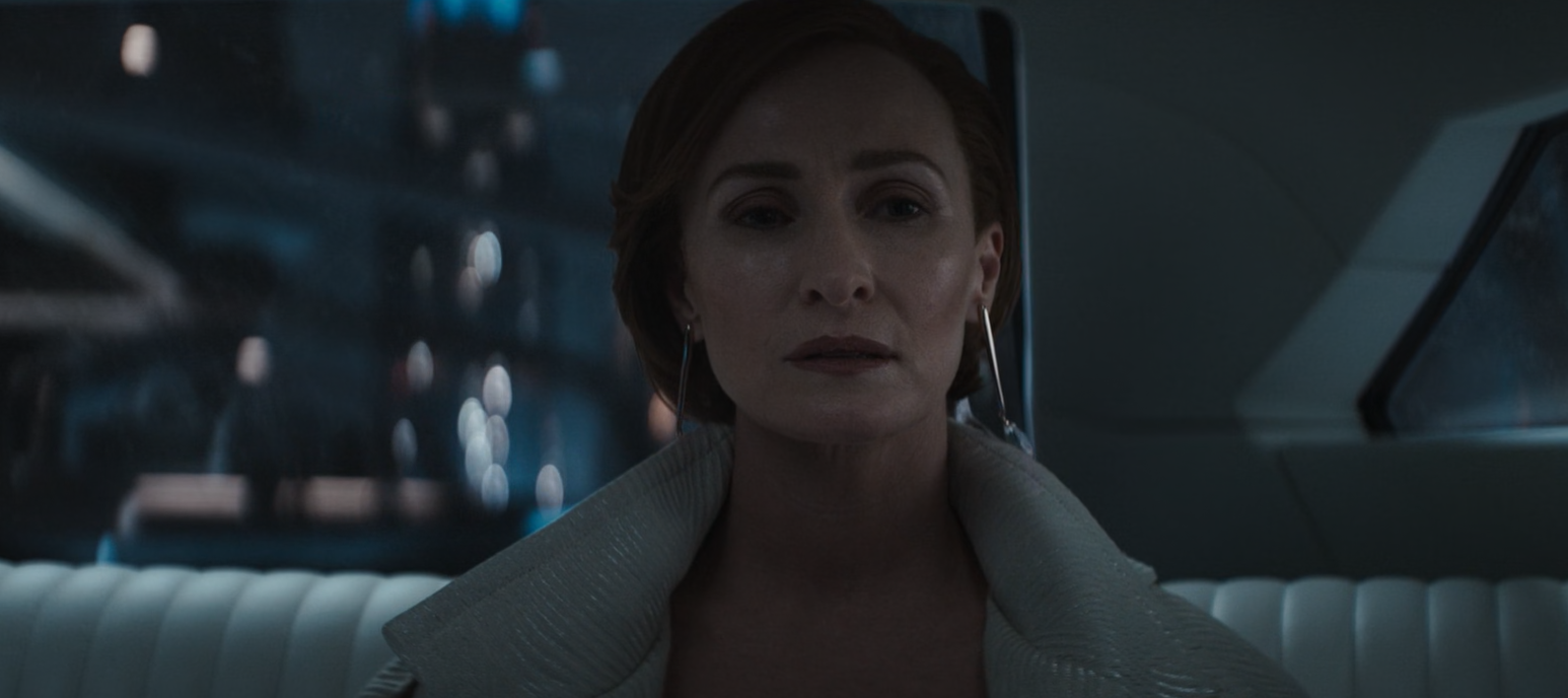 When her husband follows her into the limo from whatever ritzy event the two of them were just attending, she accuses him of relapsing into his old gambling habit. A habit he (truthfully, as far as I can tell) insists he kicked before they ever came to Coruscant, but she's hearing none of it. Cold, exhausted marital rage seeps out of every pore in her skin and resonates in every syllable of her words as she rants about how disappointed in him she is and brushes away all his objections and offers to prove himself innocent with a few emotionally deep-cutting words.
