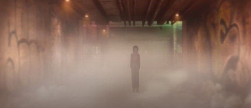Cut to Mikiya and his police detective uncle riding around in the latter's cruiser. For about two seconds, until they appear to hit something. Then it's back to Shiki. Then Carrot whimpering in a dark room as blood flows from a stab wound on a dead someone or other's neck. Then the dead person gets up and thrashes his slashed-open head around in a Silent Hill monster sort of way. Then more random cutting imagery and blobs of reddish to imply blood. Then a...junkyard? Fallen-apart boiler room? With steam flowing purposefully through a ventilation duct and into Carrot's brain...then him being beaten by what looks like it's maybe supposed to be his father, then more cutting, then...you know what, I'm just going to ignore the rest of the mysteeeeeeeeeeeeeeeeeerious montage and jump ahead to when there's an actual story happening.