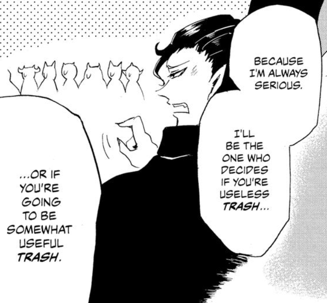 ...again, there's an implication here that he doesn't think Iruma will be able to do the magic properly. Despite him not having any reason to suspect that Iruma lacks typical innate demonic magic (if he knew he wasn't a demon he'd already be eaten, no?). As far as Naberius knows, Iruma has cast a powerful spell and won a deathmatch against a magically powerful (if not yet properly trained) opponent. He's acting like he expects to be able to easily get rid of Iruma here, but I'm afraid I can't follow his train of thought.