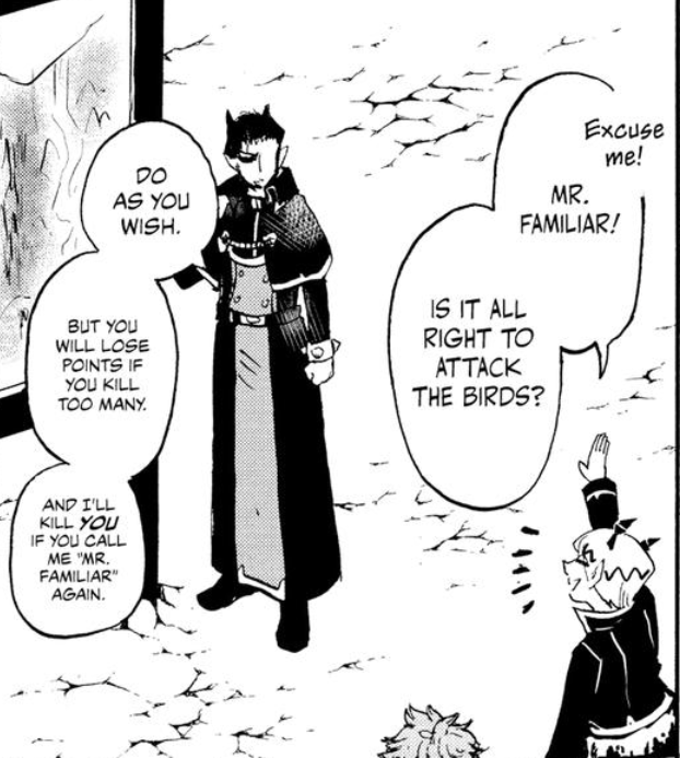 Anyway, the chapter ends with the reveal that demons can all extend functional wings from their bodies and use them to fly. Which puts Iruma at a very severe disadvantage even before we get to the bird monster issue.