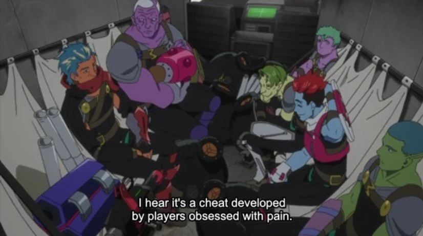 Kaburagi relents. After warning Mikey of the risks, both physical and legal, he tells him that he'll teach him how to hack the limiters. He has to promise, though, to never reduce their functionality by more than 20%. That 20% margin is kinda-sorta just a safety buffer; you can still have negative effects if your avatar gets totalled, potentially, but most damage isn't going to have noticeable effects on your true body. Turn it down any lower than that though, and things get both riskier to your health and more obvious to the referees. Mikey thanks him profusely, and vows to never take unnecessary risks with this as long as he's secure in his pro-gamer status.