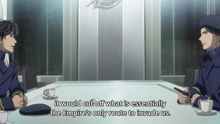 Wen-Li explains that, at least for him personally, it's nothing like that at all. In fact, he's hoping to retire from military service and finally start that goddamned history teacher job after this mission. He believes that if the Alliance manages to secure Iserlohn, the Empire will have no corridor through which it can realistically mount another invasion of Alliance space. Which means that, as long as the Alliance government doesn't go insane and try to invade the Empire back, this could actually be the beginning of the end of the war.
