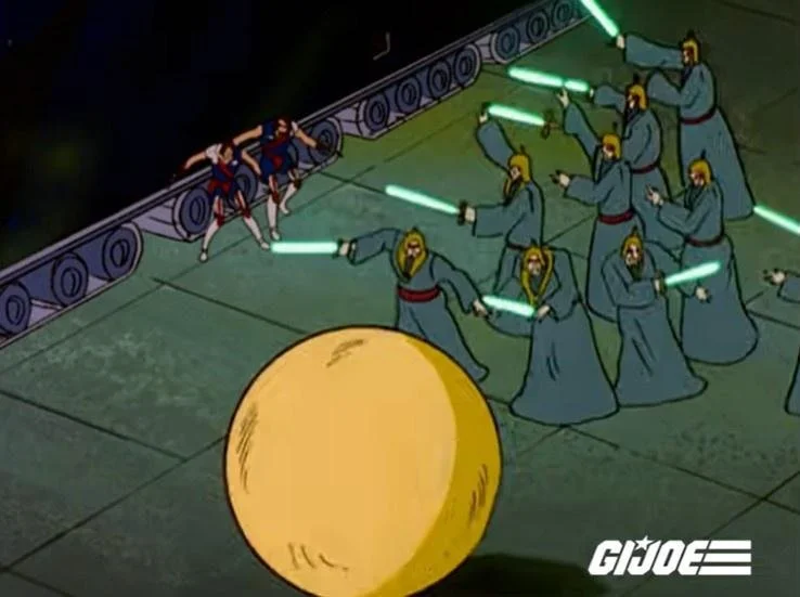This episode doesn't actually culminate in the City of the Dead, as it turns out. Also, I'm not sure why that location got episode naming rights, because it's only one of several locations (all famous landmarks, naturally) that GI Joe squadrons are sent to intercept Cobra cube-placing teams at. But anyway, the City of the Dead clash - along with several other battles - actually takes place in the next episode, "Three Cubes to Darkness."
