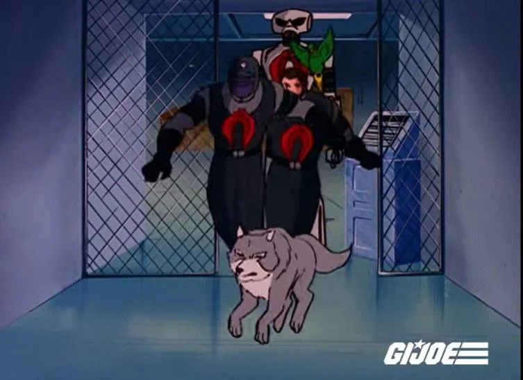 The characters we focus on include some familiar faces from the comic issue I reviewed, and some new ones. All with their personalities softened and rough edges sanded down to mere gruffness at worst. Stalker is here, and still probably the most violent Joe, but it's the silly action-quippy kind of violent now. Snake Eyes is still his silent, lethal self, but now he brings a cute pet wolf with him wherever he goes that totally undercuts the menace of his comic self. Scarlet's most distinguishing trait, aside from the martial arts skill, is her love of cute fluffy things. Hawk is the least changed, still being the straight-laced leader guy.