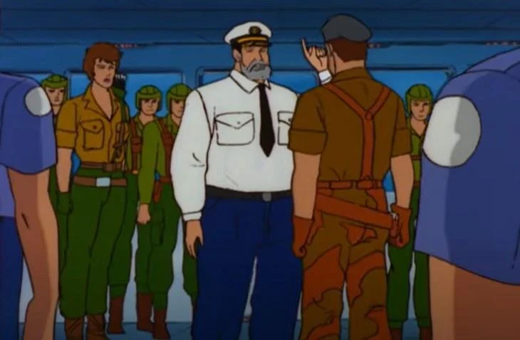 The next complication the infiltrator duo faces, by the way? After joining the assembly line to put the finishing touches on the Pyramid of Darkness components before deployment, they get called aside by a Cobra lieutenant who scolds them about violating their base's policy on pets. Somehow, it took that long for anybody to notice.