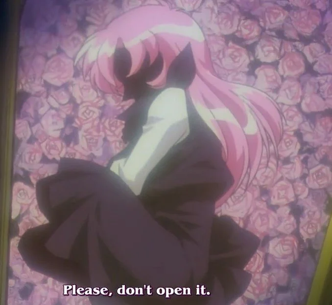 In any case, I'm pretty sure the Rose Prince lured Utena into that flower-filled coffin, and even more sure that he appeared and "saved" her from suicidal ideation shortly after the two boys left.