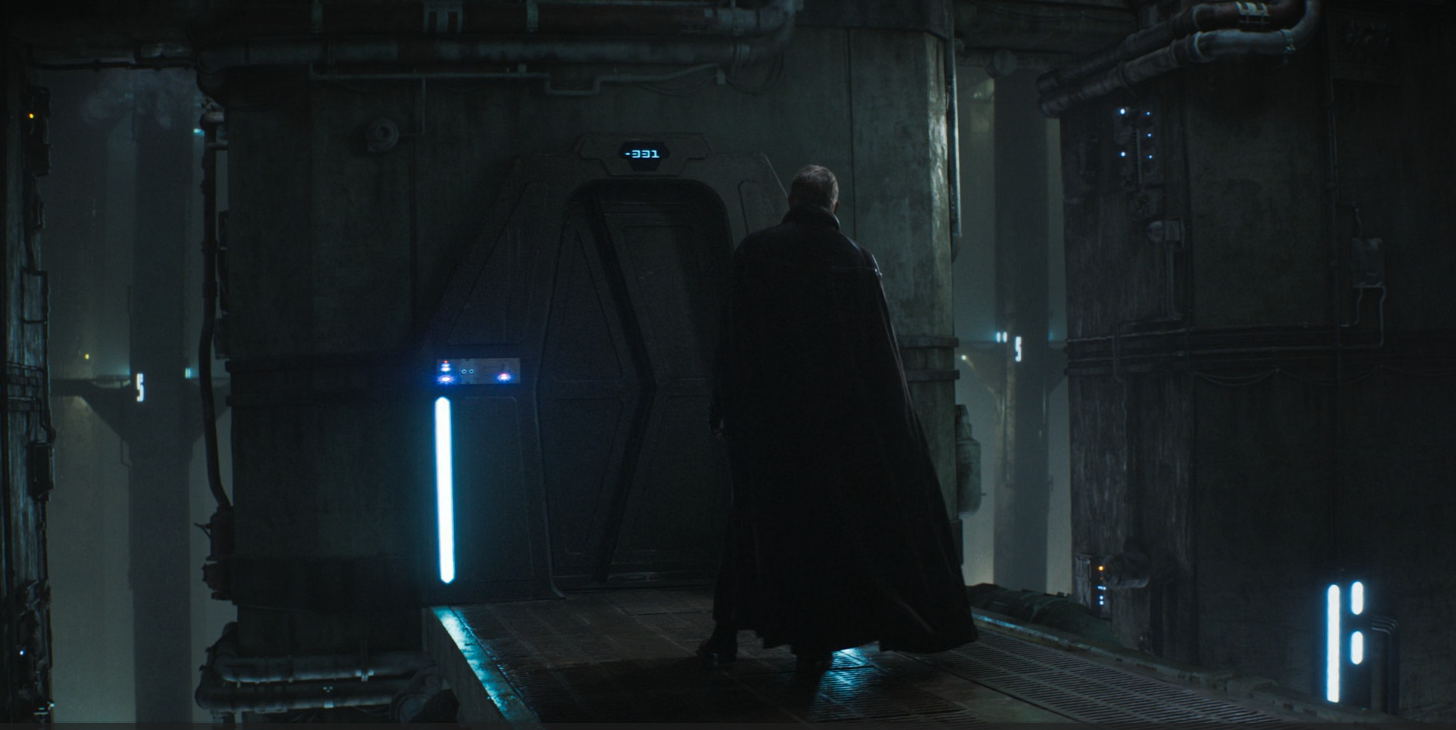 He gets out of the lift, gets into another lift that goes down even deeper into the artificial wasteland underhanging Coruscant, and finds the earpiece hidden in the compartment. He puts it in. Luthen congratulates him on his daughter's recent birthday, especially with how healthy and still alive she is. Isn't it great how she's healthy and not murdered? It really is great.